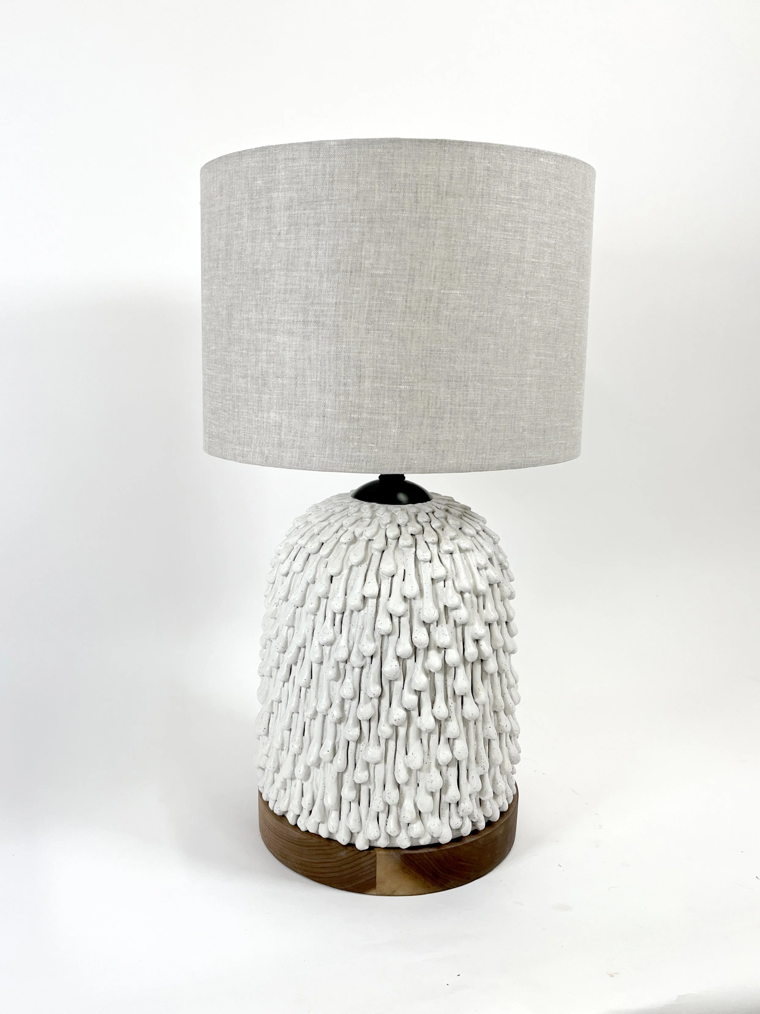 The first time I presented a sculpture to one of my clients he replied, “I don’t want to hurt your feelings, but that would make a great lamp.” After my ego recovered, I took another look at the piece and realized he was right. It wasn’t long before all my ideas were coming in the form of lighting design. Over the years I have managed to array a very talented group of craftspeople to help turn my ceramic designs into high quality lighting from wiring to shades.